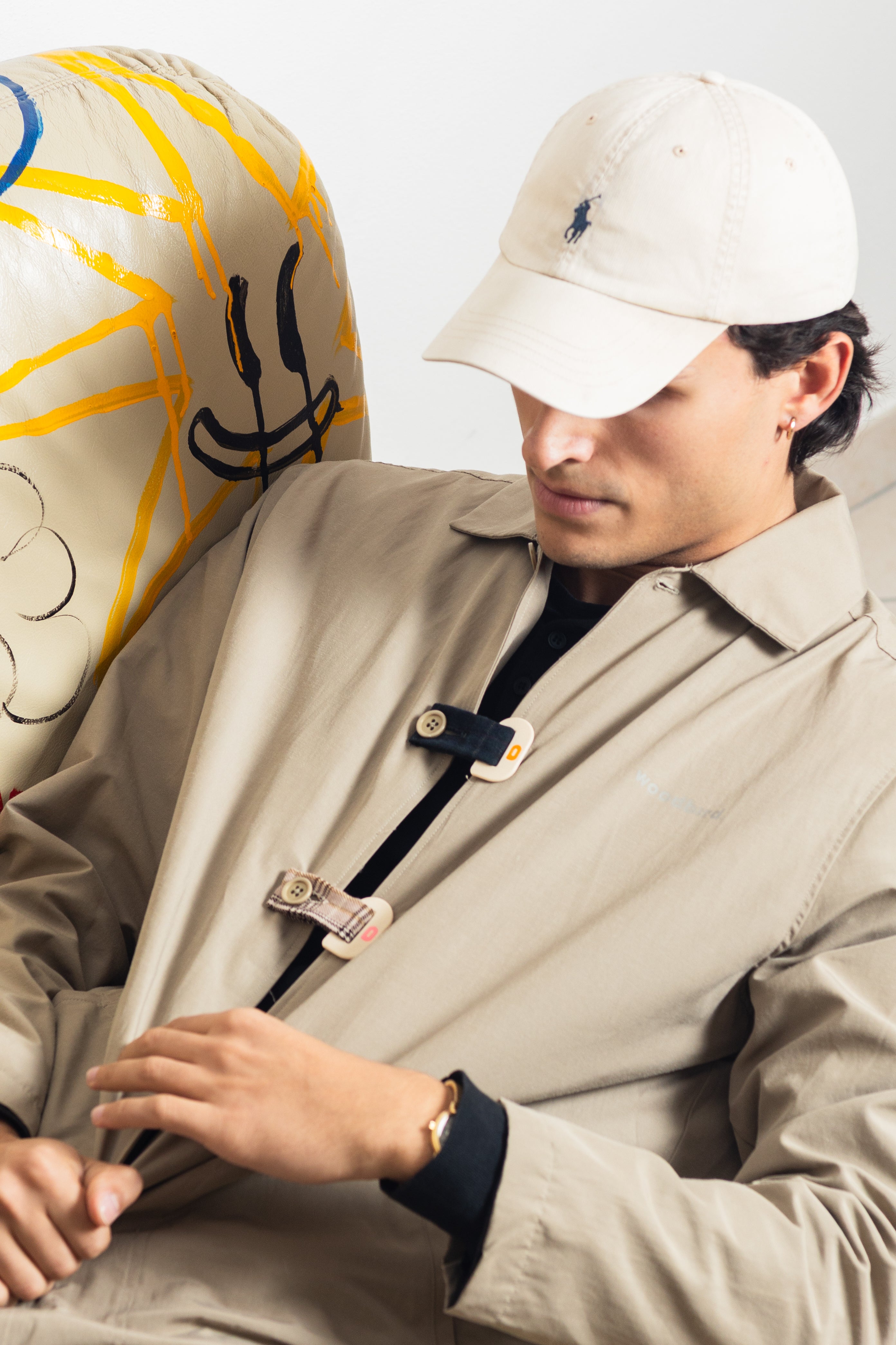 Per alcuni modelli SLOT con corda, infila l'estremità del cordino nell'asola dalla parte eterna del tuo capo, trascina fino a fermare il bottone e aggancia "l'asola" del cordino attorno al bottone del tuo capo di abbigliamento.